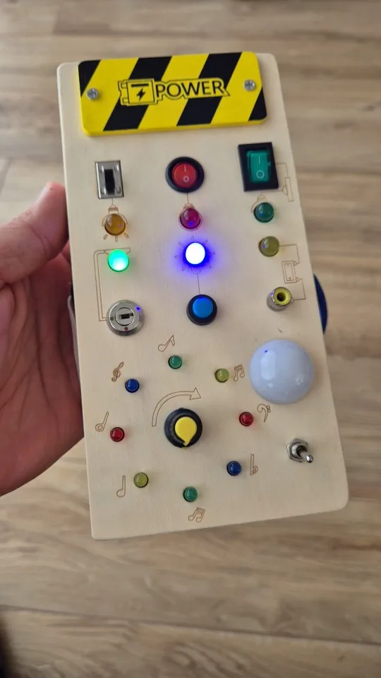 Keep little hands occupied with the Wooden LED Lights/Switch Control Busy board. This fidget-friendly board provides hours of entertainment while developing fine motor skills. Perfect for on-the-go or at home, this quirky board is a must-have for any child (or adult!) who loves to keep their hands busy. (WARNING: may cause bouts of uncontrollable giggles and overall fun!)